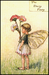 | Daisy Fairy, so pristine Whose eyes are first to greet the day Can ger arrival on the scene mean sping has come and means to stay? The picture of true innocence As she arrives upon the earth Daisy Fairy represents Springs arrival and rebirth |