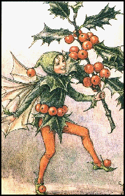 | Ruby red on forest green. Lush amidst snow's winter white, Holly Faery may be seen Feeding birds in winters blight No bigger than his berry He is difficut to see But He's always making merry And his joy can set you free |