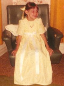 | Me at 8 Well, I am disputing that with my mother right now, I think I was 5 or 6 ... we are checking ...The beautiful dress was made by my mother ... Its was the most sunny yellow, with white daisies... there is another pictureof me in it ... but I am hunting for it still !! (Mom was right - lol - 1978 was when this was taken! ) |