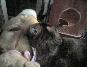 | Mazzy Kitty 2008 with my Easter Plushie - lol She likes it too!! Thanks Mom!! |